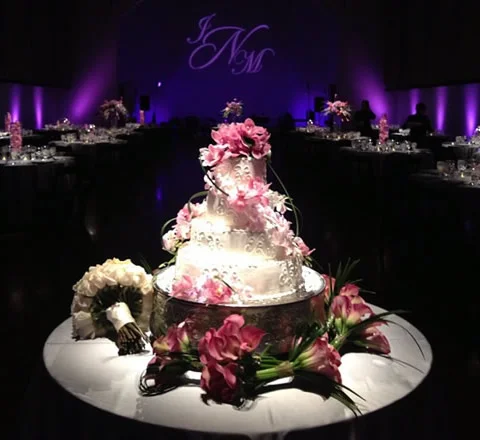 Lighting for your wedding is "totally worth it." Uplighting & Gobos are "The most get-noticed totally-worth-it wedding details that'll add serious impact to your wedding day." - TheKnot.com